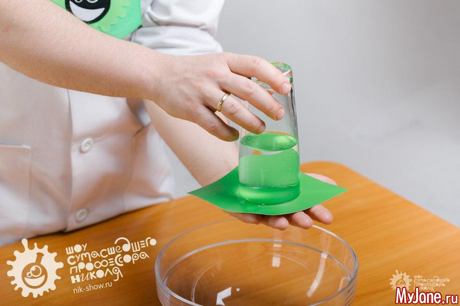 Все дело, конечно же, в атмосферном давлении, именно оно удерживает бумажную крышку и не дает воде вылиться!