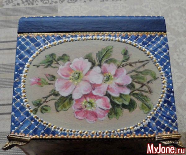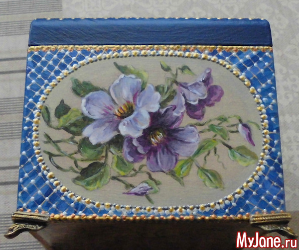 Первоначально я хотела нарисовать шкатулку на тему "Времена года", но иногда бывает так, что сама работа диктует тему. От первоначального замысла пришлось отказаться.