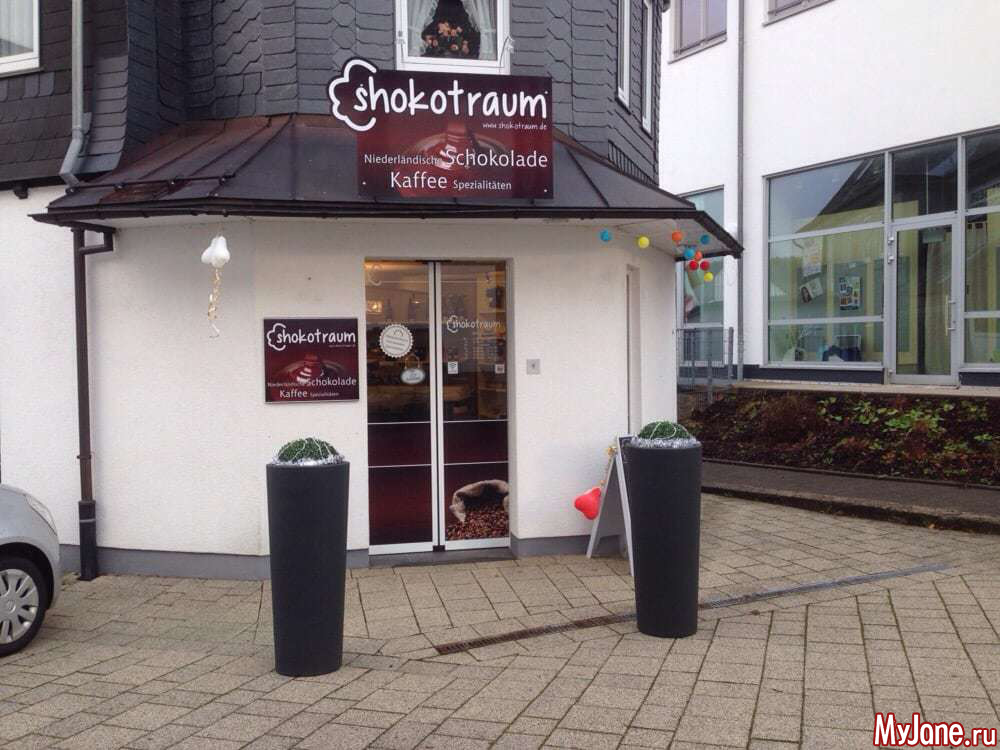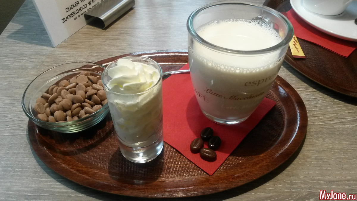 Перед нашим отъездом пошёл снег и мы заскочили в шоколадницу напротив отеля и попили горячий шоколад