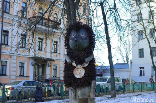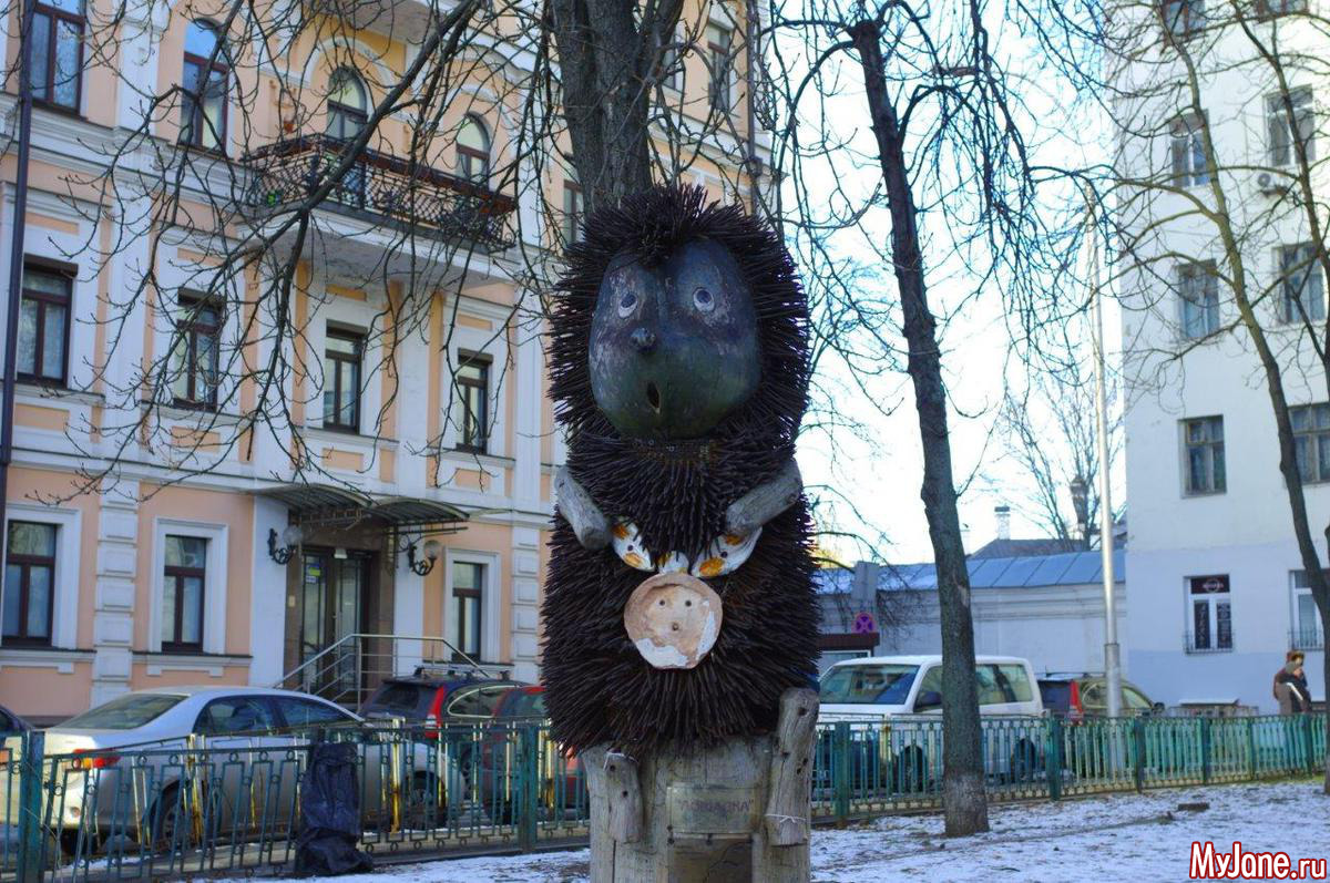 Кот из одноразовых вилочек в Золотоворотском сквере