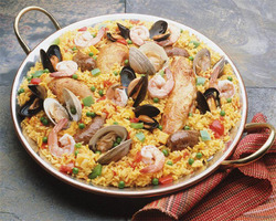 Накалим масло и запустим морепродукты, добавив к ним минуты через 2 чеснок, натертый на терке.