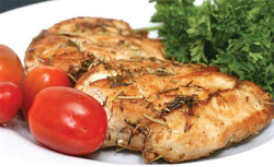 Куриные грудки промойте, слегка отбейте. Вино смешайте с растительным маслом и измельченным чесноком и вымачивайте в этом маринаде курицу. Посолите и поперчите. Луковицу и душистый перец отварите в воде. Приготовленный отвар процедите, остудите и залейте в емкость для жидкости пароварки. Подготовленные грудки положите в корзину пароварки, накройте фольгой и варите до готовности. Подавайте с отварной морковью и зеленью.