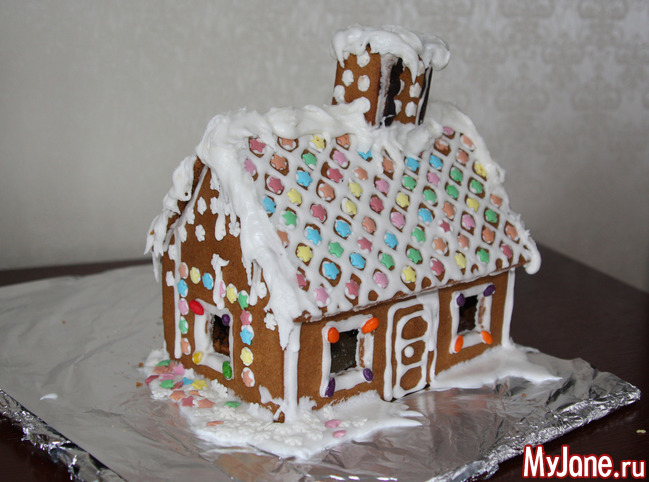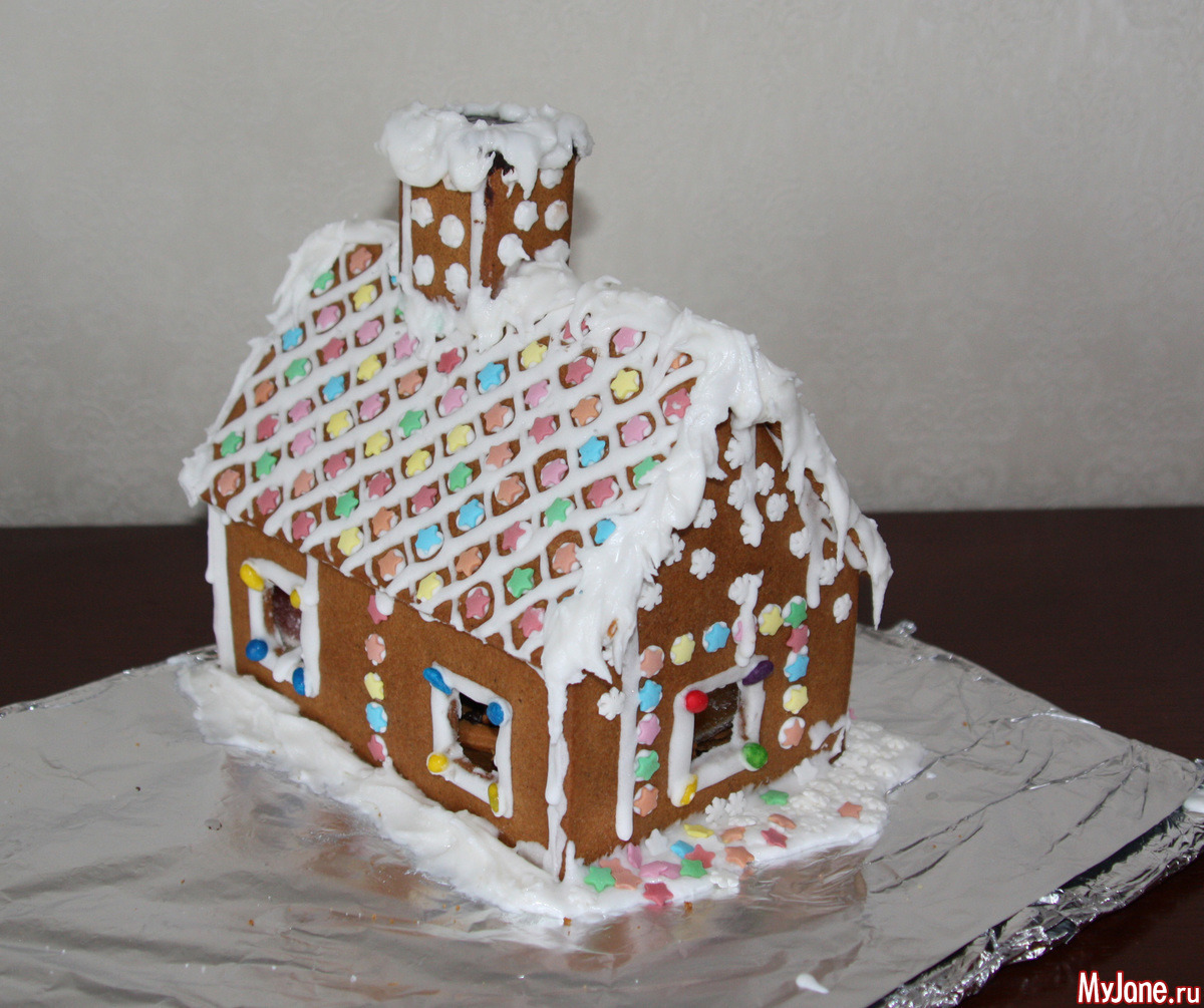 Если вы будите печь, то сначала надо сделать точную "выкройку", потому что пряник режется сырым, а не готовым. Все вырезается сразу, и окна в том числе. Если вы будите вырезать на глаз стенки, то потом при сборке они могут просто не сойтись.