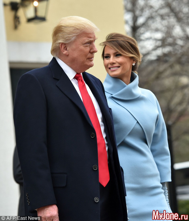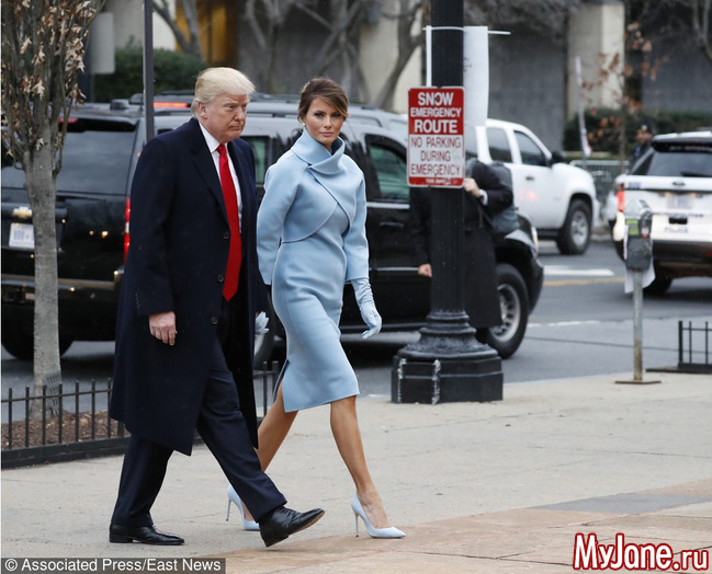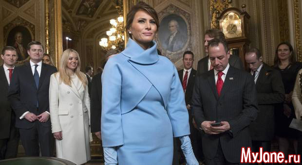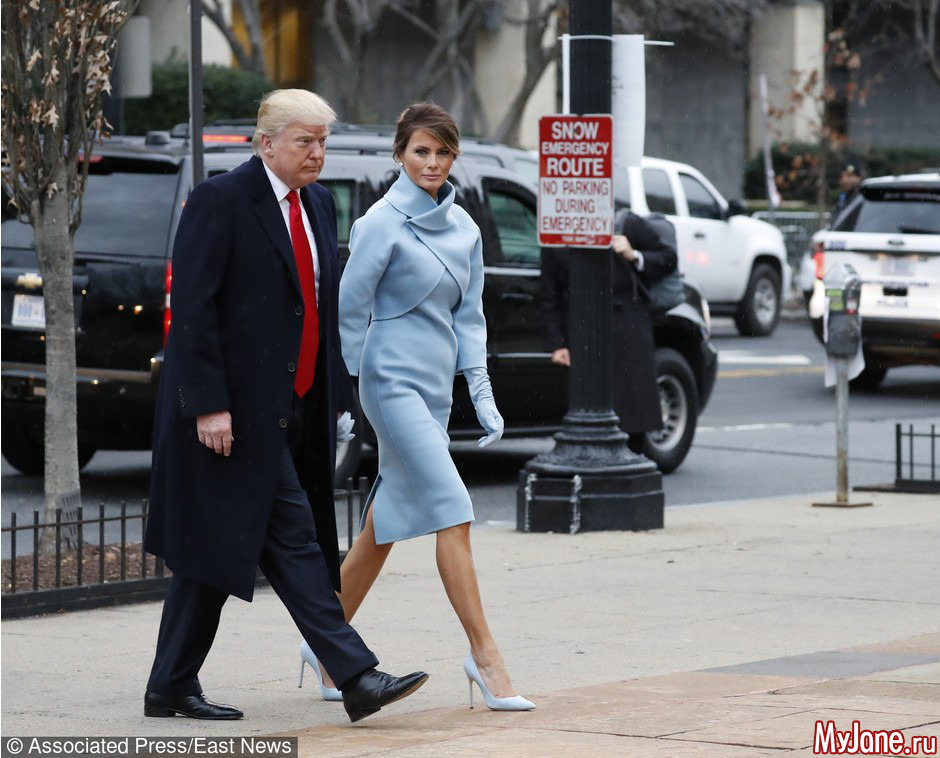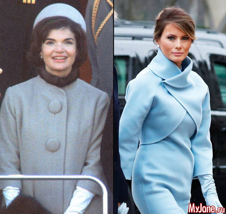 Элегантный аутфит миссис Трамп уже сравнили с образом Джеки Кеннеди, также выдержанном в голубой гамме, на инаугурации президента Джона Кеннеди в 1961 году.