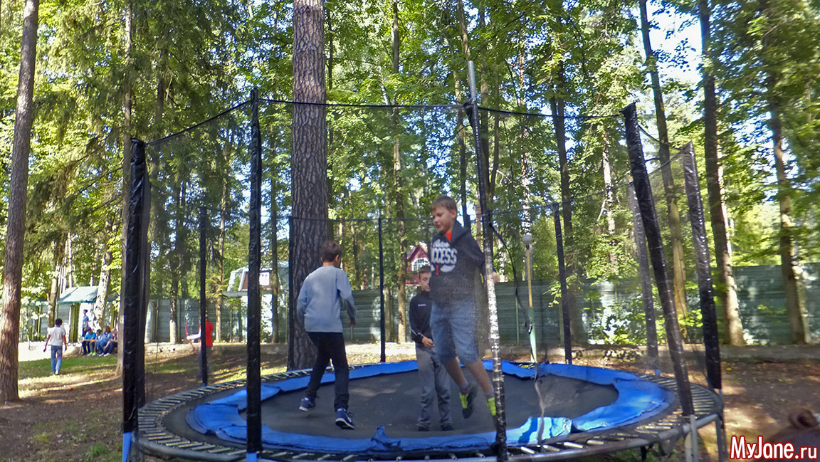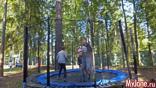Есть и батут, где малыши просто прыгают, а старшие учатся делать акробатические трюки.