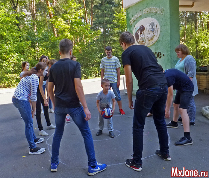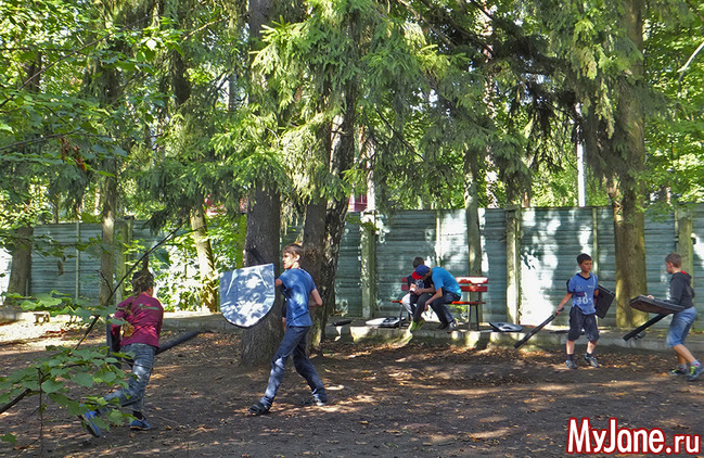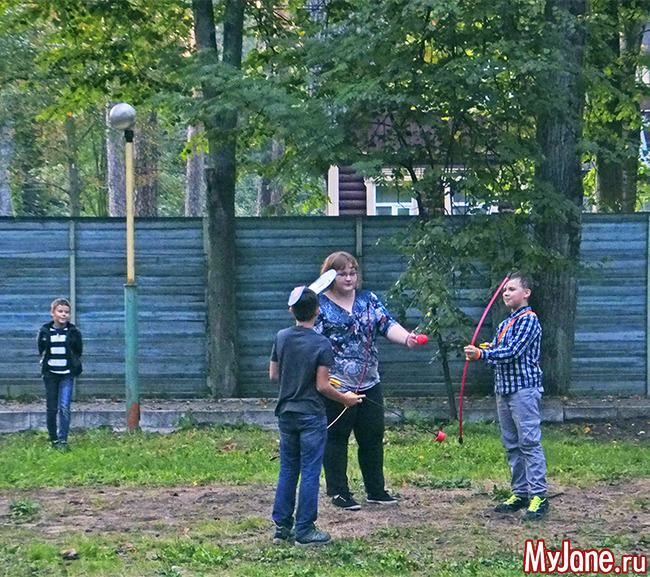 ... а старшие уже настрелялись, и предпочитают поиграть в мяч с маленьким Вадимкой. Но на каждый бросок мяча следует трудный вопрос от княжны Анжелики.