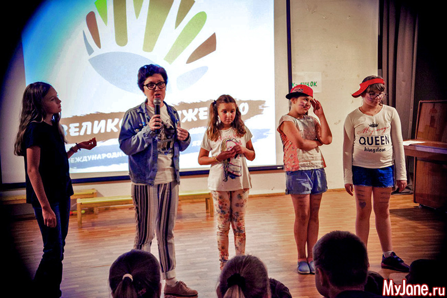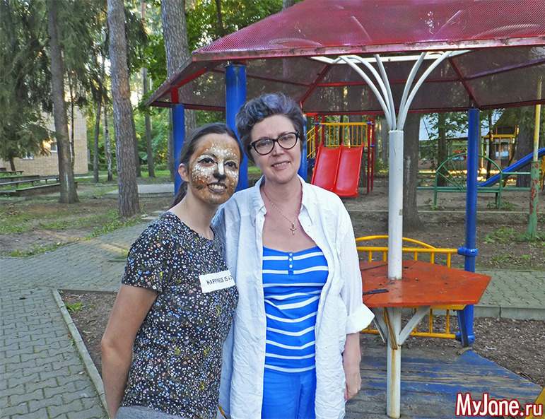 Английский язык - часть программы. Его мы вели вместе с Мэри Дель Гаудио, с помощью еще двух вожатых-лингвистов. Мэри загримирована под оленя, потому что в тот день была игра "Сафари".