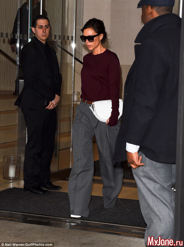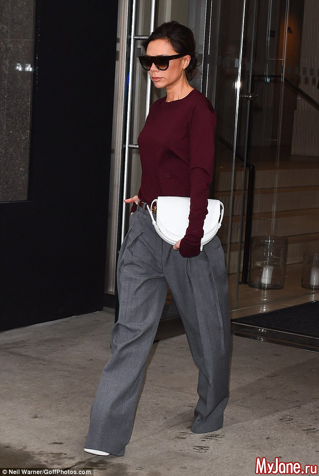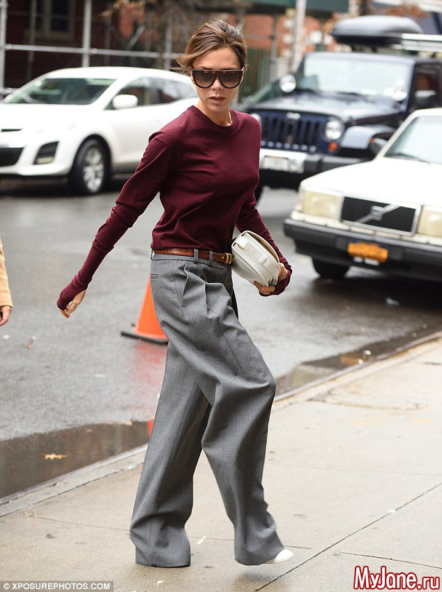 Виктория Бекхэм была замечена вчера на улицах Манхэттена в брюках-оверсайз.
