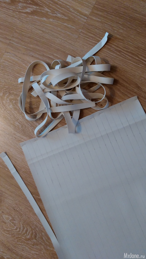 Отмечаем на ткани равные отрезки нужной длины и шириной 2-3 см, а затем аккуратно разрезаем ножницами.