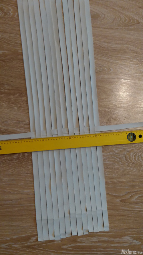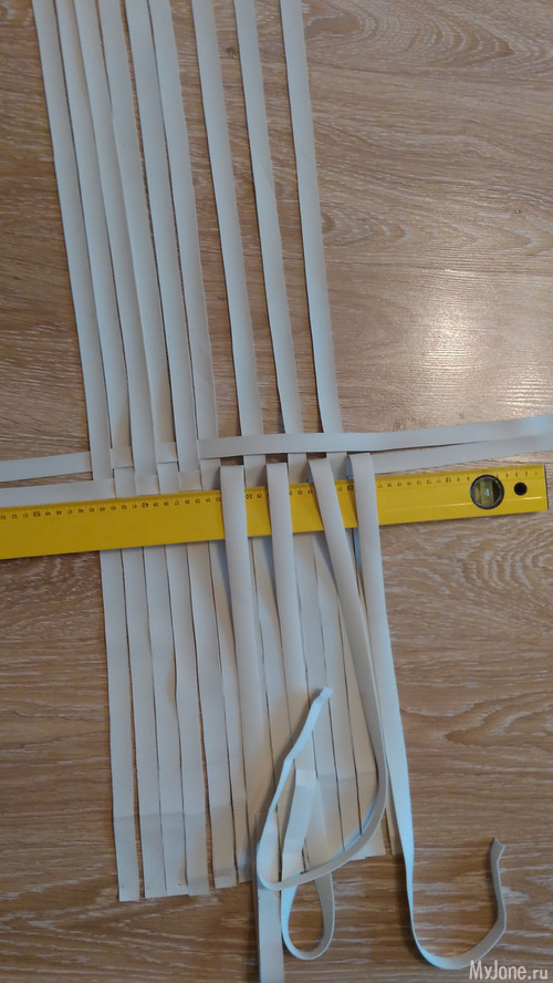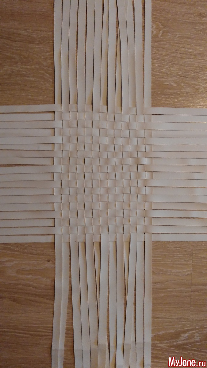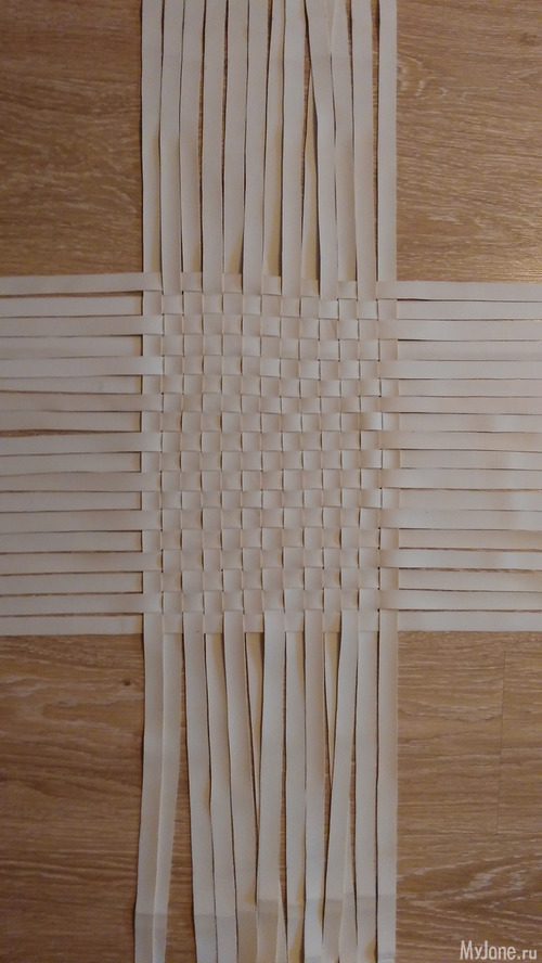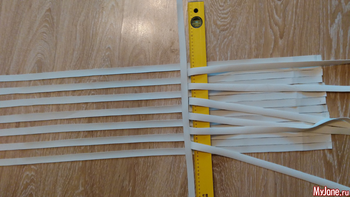 Берем нарезанные ленты и переплетаем их в шахматном порядке: