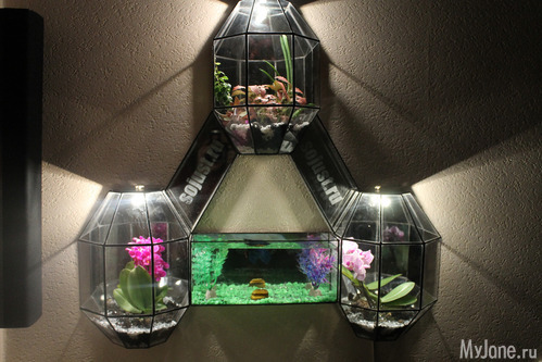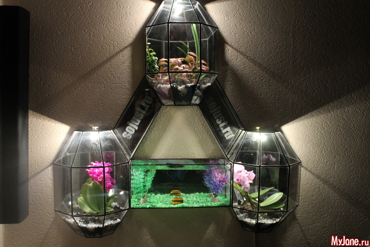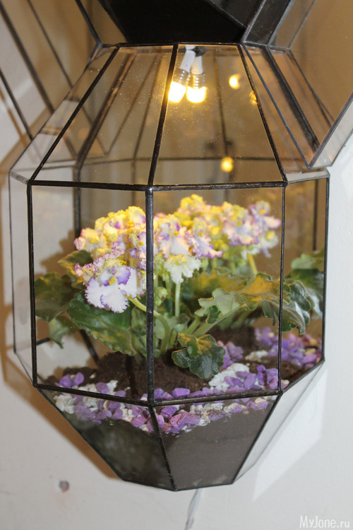 Почему я решила рассказать об этом? Просто недавно ездила в Пушкин. Люблю там бывать, бродить по историческим местам, наслаждаться тишиной и покоем. И перед отъездом домой зашла в один интерьерный магазин. Клиентов почти не было, и я спокойно разглядывала роскошные предметы интерьера…Вдруг мой взгляд наткнулся на что-то привычное и родное и я даже не поняла сначала что это. На стене висела очень интересная конструкция из стекла и зеркала, а в ней росли... фиалки! При этом висела она в достаточно затемненном месте. Но при этом внутри был свет. Подозвав девушку-консультанта, я узнала, что эта штука называется флариум…. По-моему, приятное и умиротворяющее слово. На вопрос, как давно там растут фиалки, девушка сказала-второй год, и это уже второе цветение. При этом поливать приходится не чаще одного раза в две недели, что им очень подходит, так как ухаживать за цветами там особо некому, да и времени нет. Он у них не продавался, но я решила, что обязательно найду, где это делают и подарю маме. С разрешения администратора, я сделала фото. Вдруг кто-то тоже ищет классную идею для подарка? По моему, это самое то!