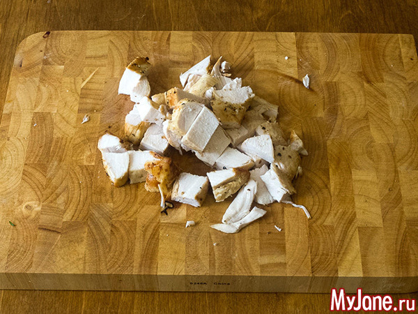 Перекладываем в миску и отставляем в сторону. Все составляющие блюда должны остыть, так как коронационный цыплёнок — это ничто иное как салат. Да-да, именно салат!