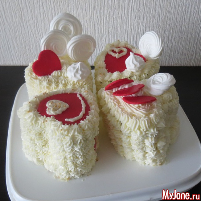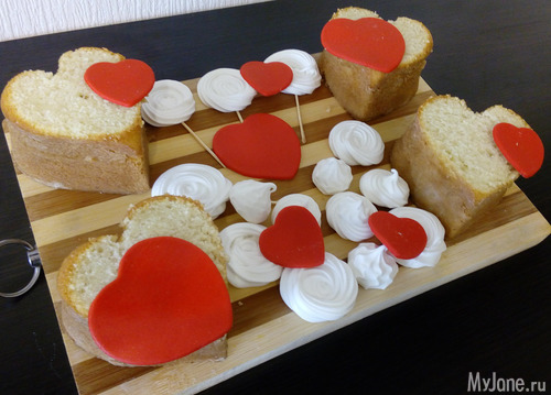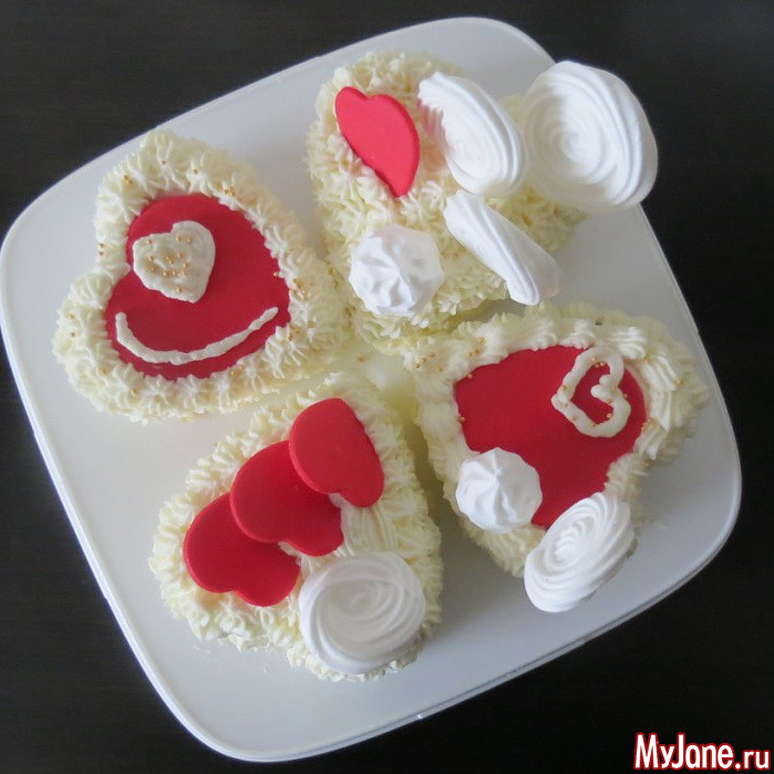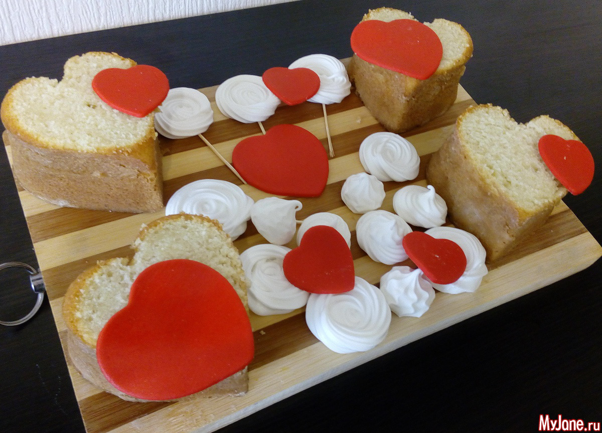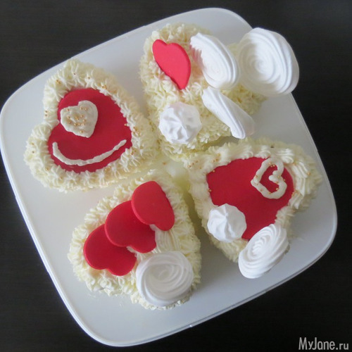 Мужу на 23 испекла пирожные в виде сердечек. Друзья сказали, что я попутала праздники, но что я сделаю, если формы сердечек у меня есть, а вот танков нет. И вообще, сердце актуально в любой день )))