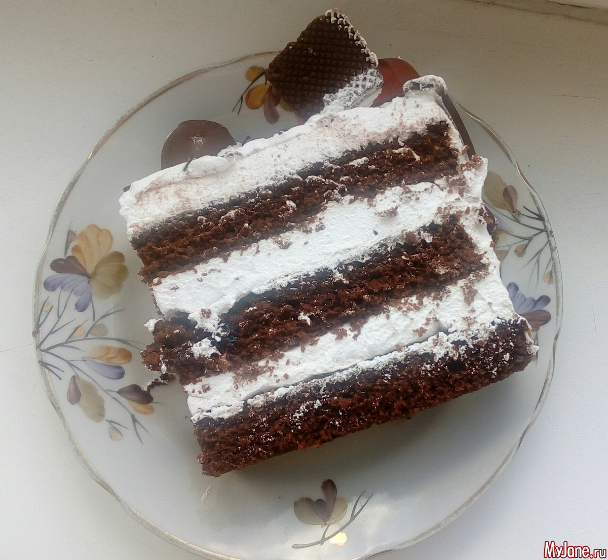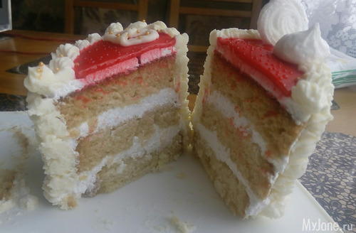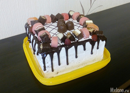 А этот торт только закончила. Пока не ясно для кого, или муж с дочкой съедят, или понесет дочка завтра его на ДР в качестве дополнения к подарку. Т. к. делала с ребенком на руках (что-то она раскапризничалась именно в тот момент, когда я его ровняла), то он кривоват... Но это не беда! Главное вкус! В нем я уверенна!