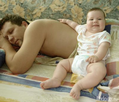 В ответ так же тихо -- «Ага, мама, спит!»