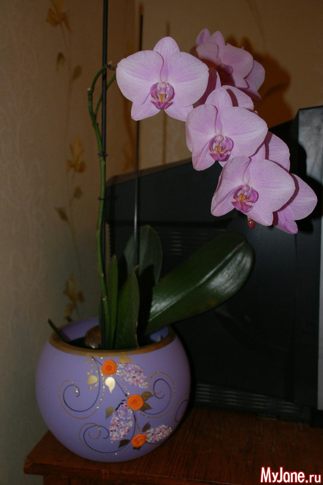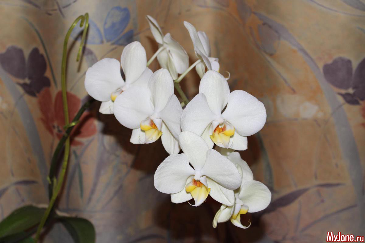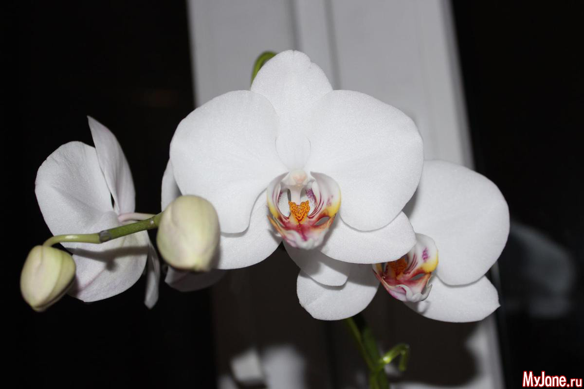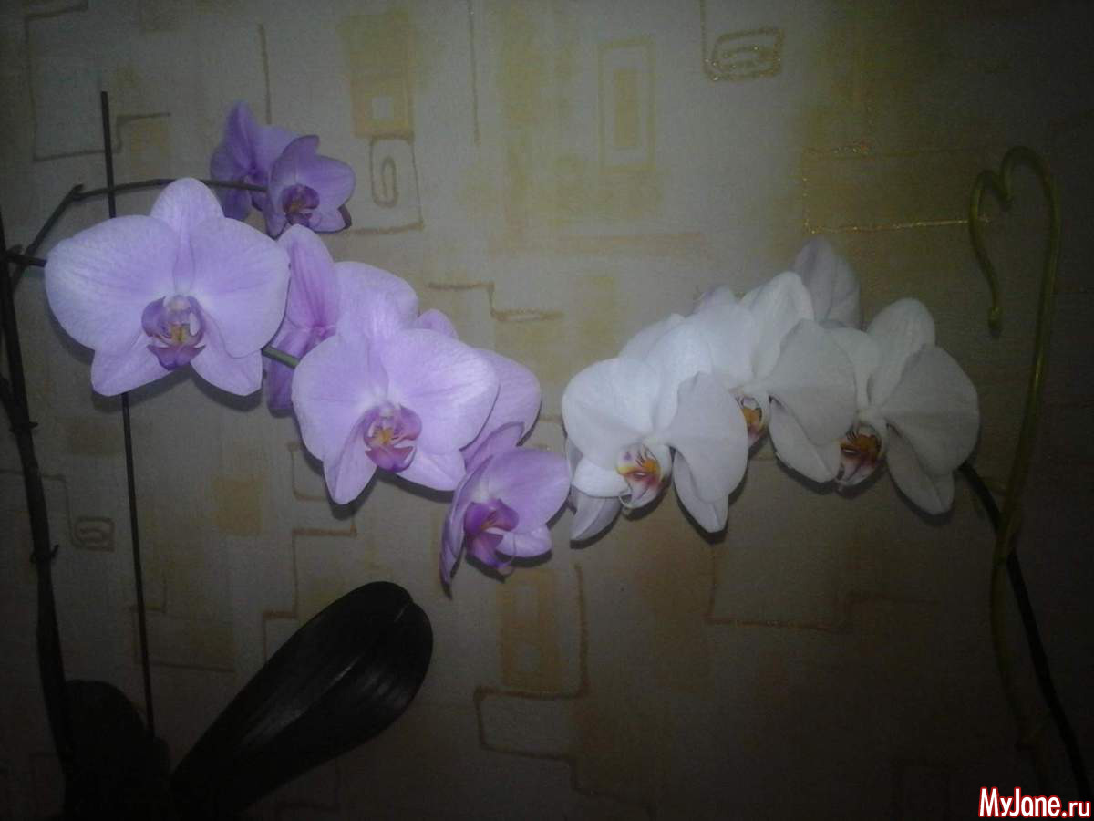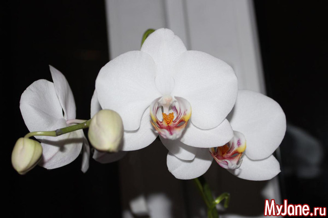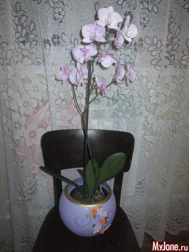 Этому фаленопсису 5 лет уже, бутонов немного, зато крупные. Мой любимый.