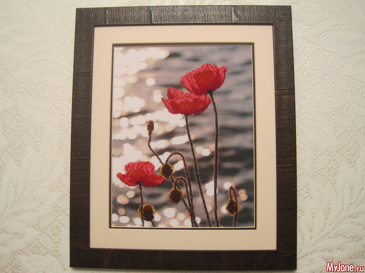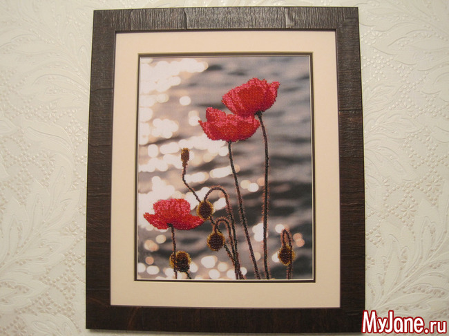 Ох, сколько же я с ним мучилась, больше года! Не каждый день, конечно же, иногда по два месяца не притрагивалась. Вроде и объем там небольшой, но эти мелкие бисеринки! Вот наконец вышивку закончила, оформила в багет, повесила на стену. Сижу, смотрю, самой нравится.