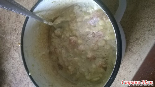 Маринад - лук, майонез, соль, перец, яйцо. Если это не курица, которая готовится быстро, то оставляю в этом мясо мелкими кусочками, а потом добавляю муку.