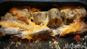 На фото рыбка уже частично съедена (поэтому противень не полный), сфоткала то, что осталось после ужина