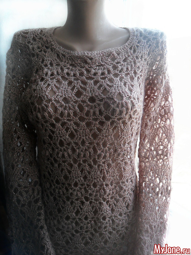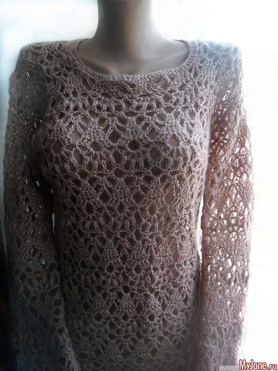 Ажурный джемпер прямого силуэта с длинным рукавом.