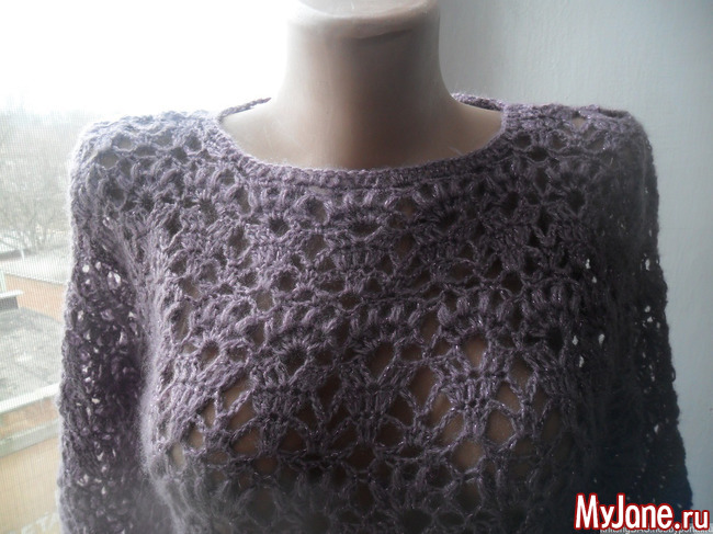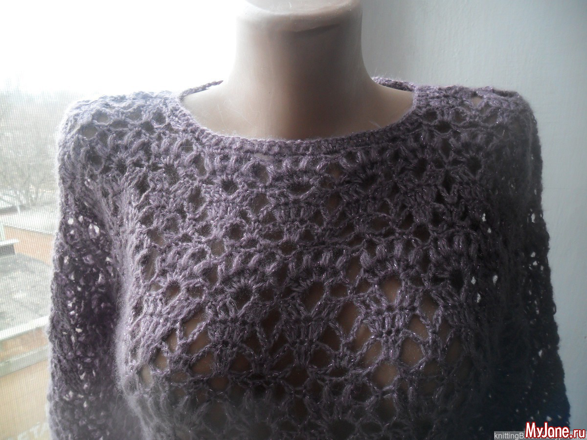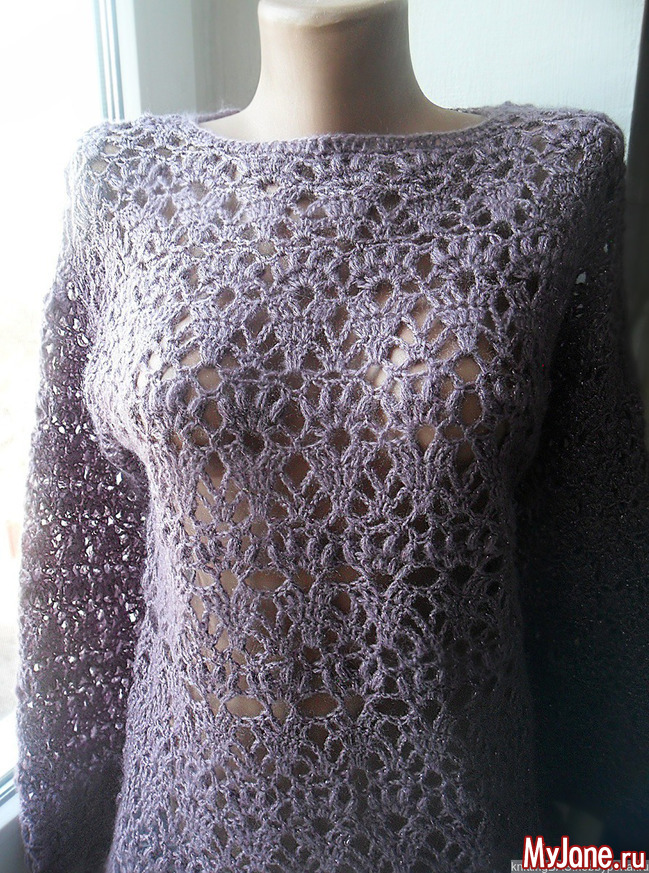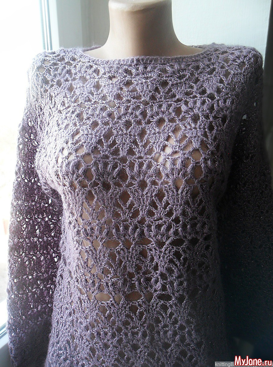 Ажурный джемпер прямого силуэта с длинным рукавом.