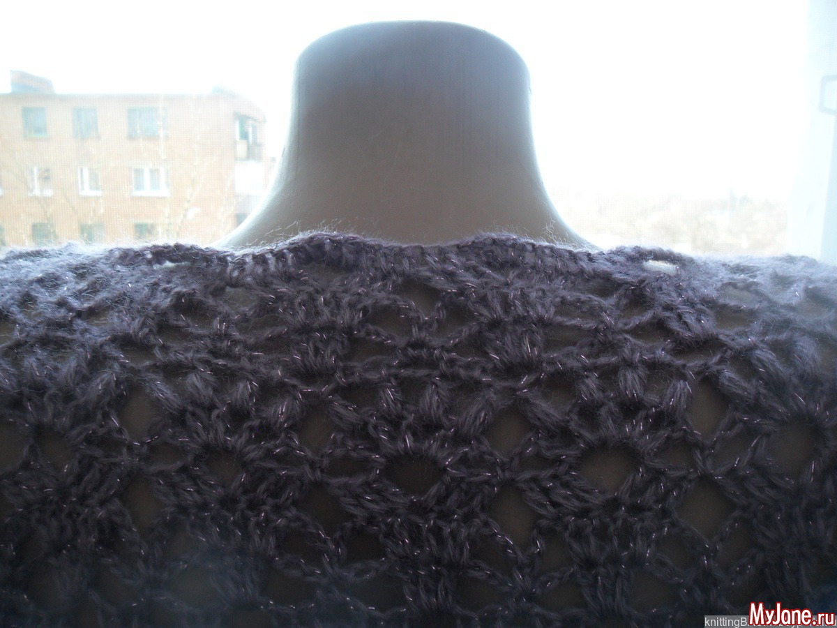 Длина изделия 70 см.. размер 50-54 укр., росс. Цвет- ежевика, пряжа ангора, люрекс.