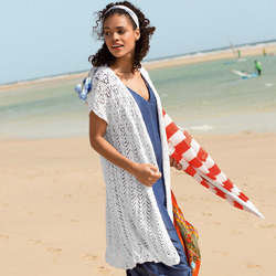 Нежный длинный ажурный жилет просто прекрасно смотрится в белом цвете, но вы можете выбрать и иной вариант, по своему желанию.