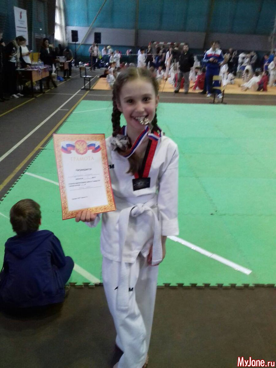 Доченька моя закончила второй класс. Занимается тхэквондо первый год. На областных соревнованиях завоевала серебро