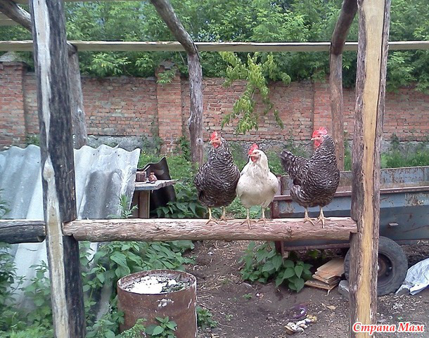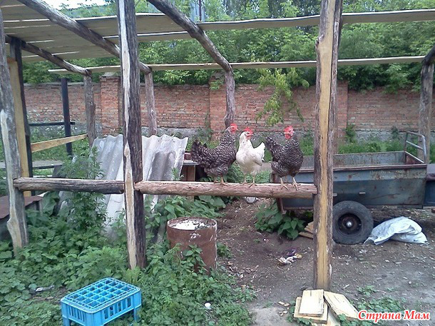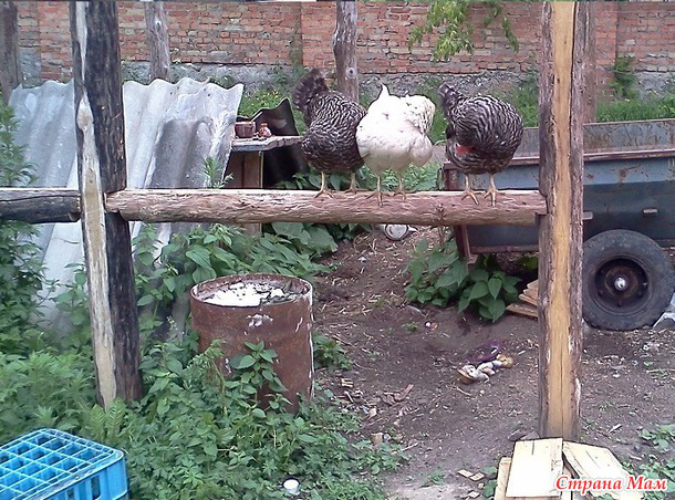 И вот наши курочки, погуляв по двору и обследовав все окрестные места предполагаемых вкусностей, решили отдохнуть на высоте.