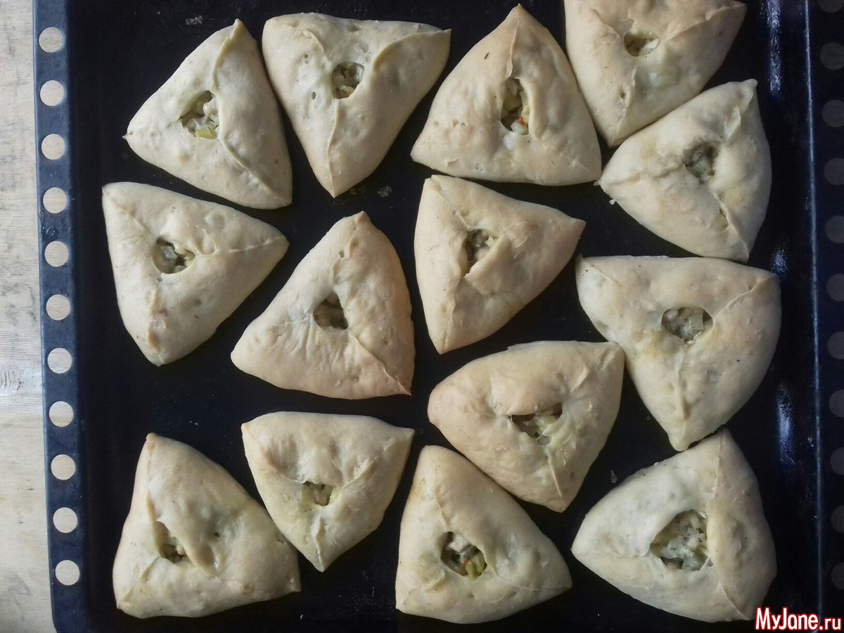 После треугольников испеклось ещё 3 сладких плюшки. Их фото нет.