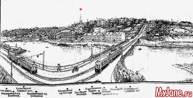 Вон замок отмечен красной звездочкой. А Волга справа, течет параллельно мосту. Ее на картинке нет