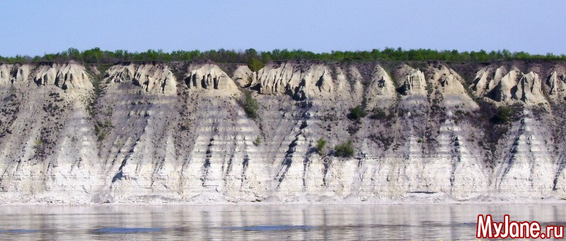 Каменный дворец, город над водой. Это уникальное явление природы, не свойственное волжским просторам, поражает своей грандиозностью. Десять гигантских столбов высотой около 100 метров, которые еще и меняют цвет в зависимости от освещения. А деревья, произрастающие вокруг, создают ощущение, что ты находишься на севере России.