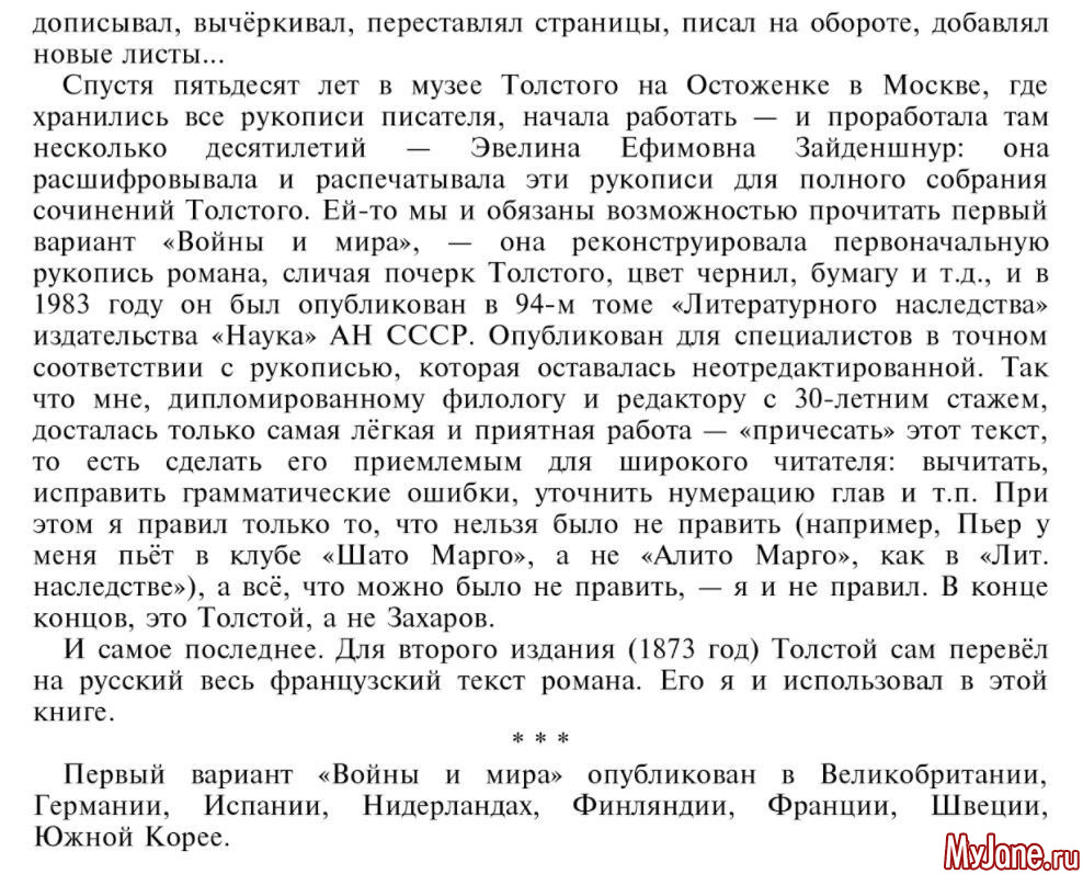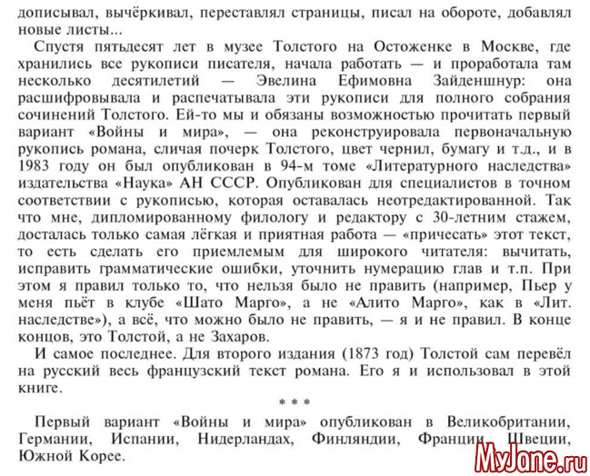 помимо окончательной версии романа "Война и мир" существовала еще одна. Могу ошибаться в деталях, но по памяти...
