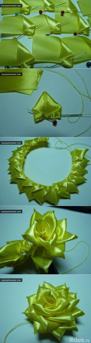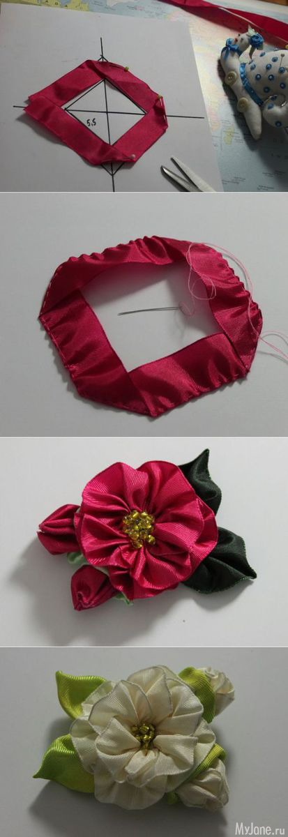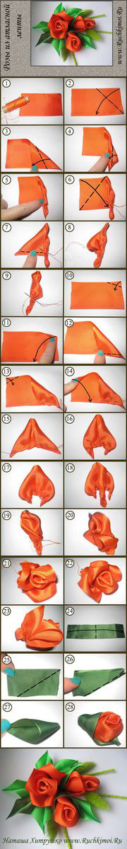 Нашла во всемирной паутине интересные МК из атласных лент.