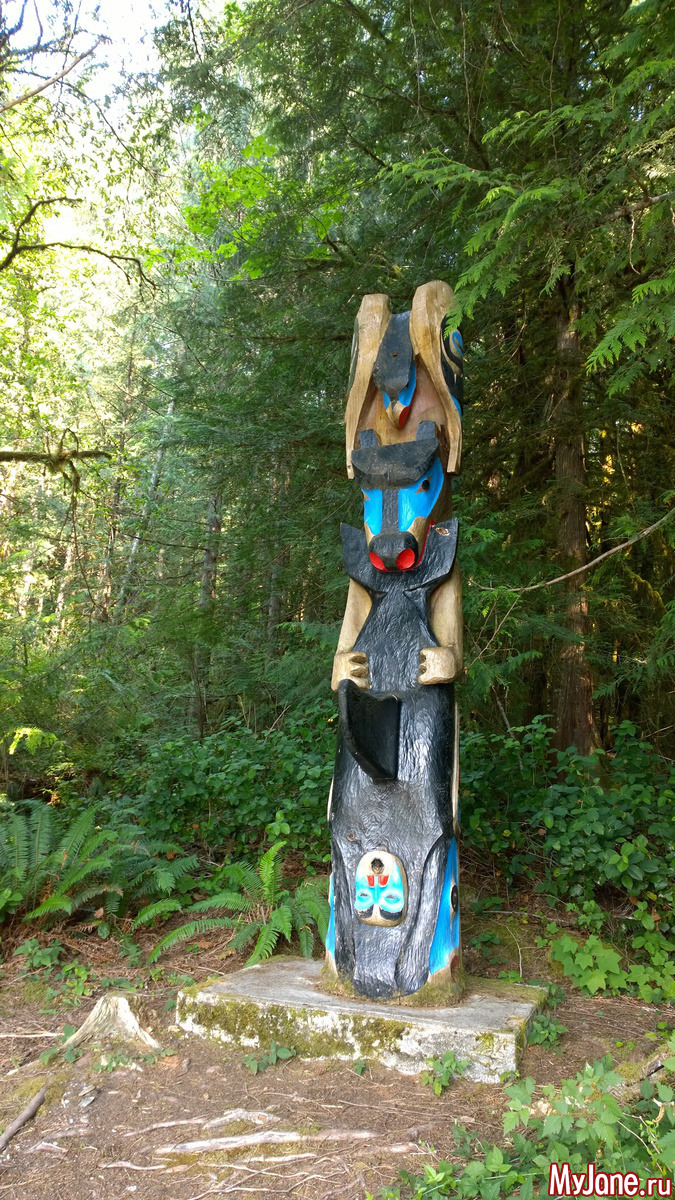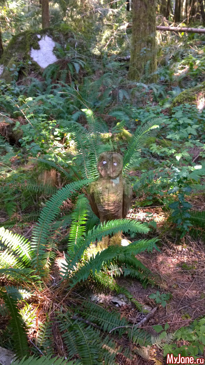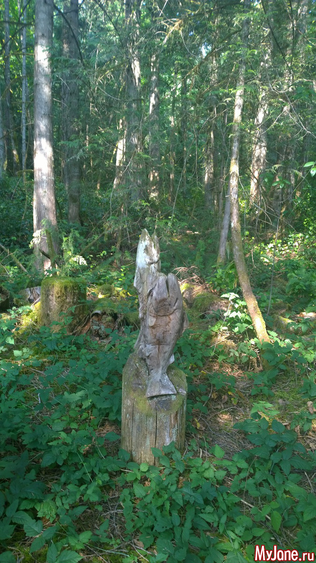 По тропе были скульптуры из дерева и тотем. Сразу говорю что это плавник касатки, а не то о чем вы подумали