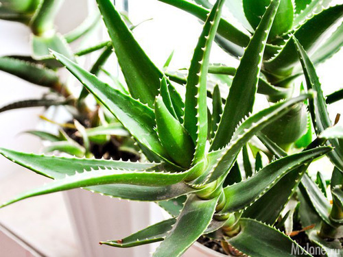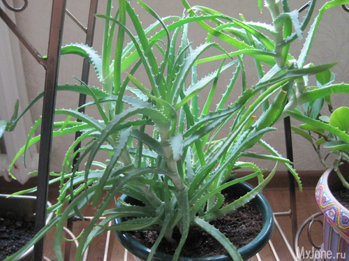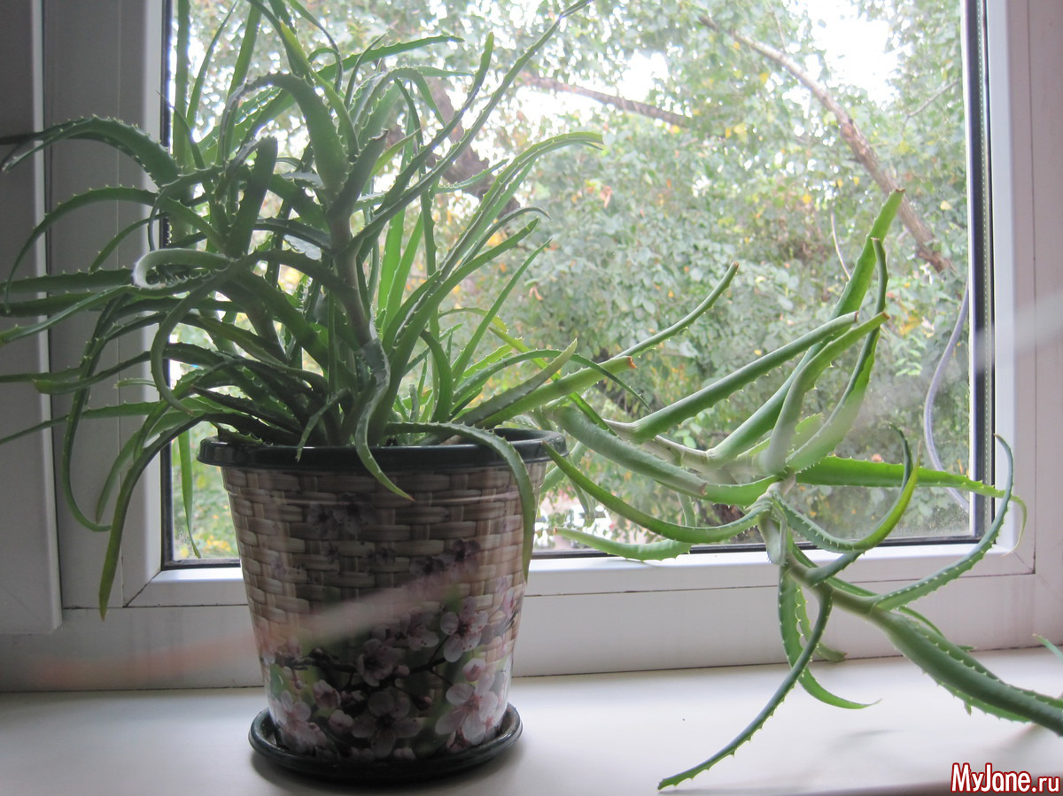 его листья моют и перекручивают с мёдом и по чайной ложке едят при простуде, ещё прикладывают к ранам и прыщам . Но он вызывает аллергию надо сначала намазать на локте и протестировать у многих не переносимость сока алое)