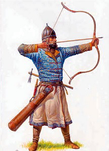 Лучник в позиции стояНа изготовке к стрельбе.