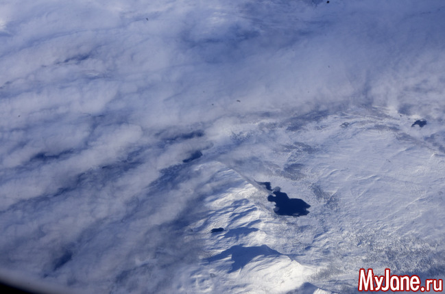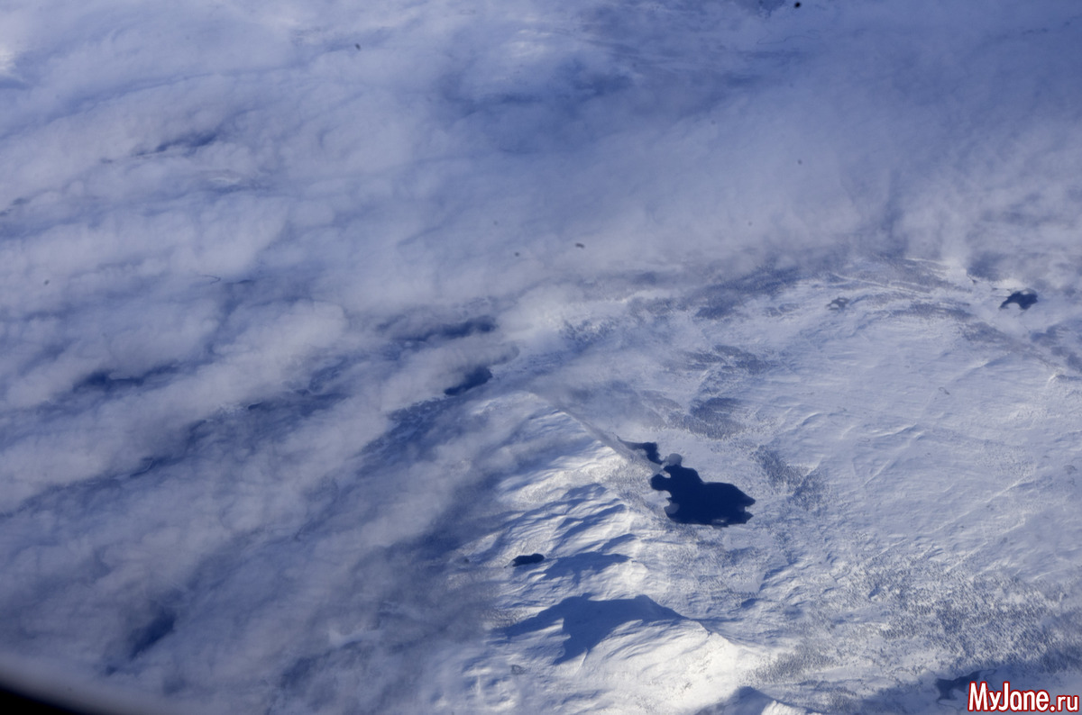 Под крылом самолета - Исландия. Когда нибудь я в ней обязательно побываю.