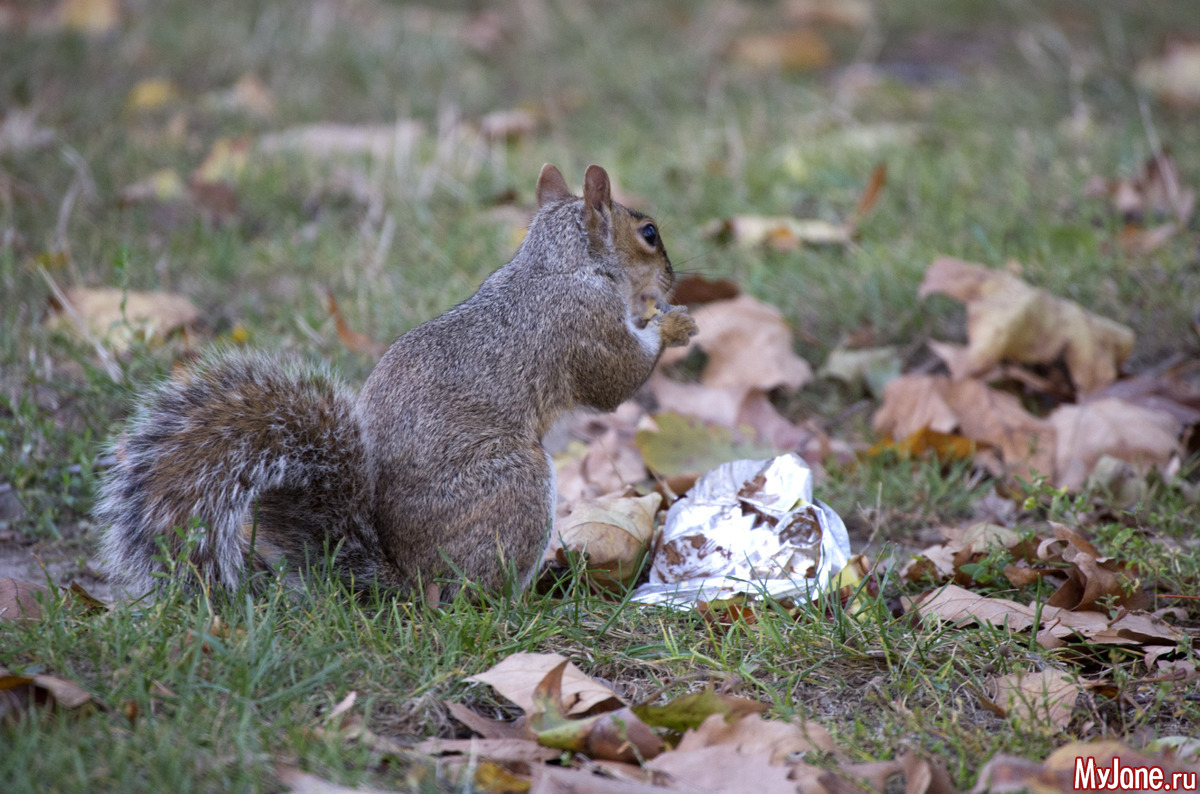 Встреча со старыми знакомыми. Нью йоркские белки. Вечно они что-то жуют.