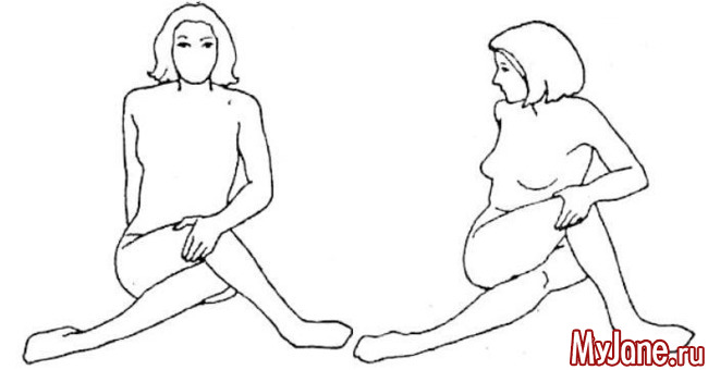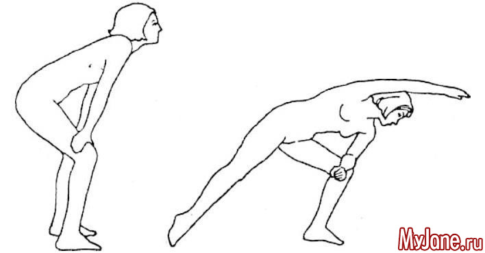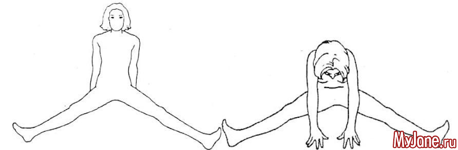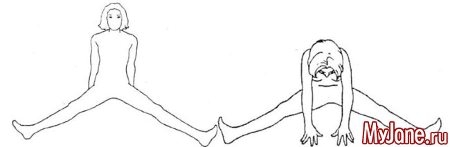 Упражнение «Шлюпка» — наклон вперед с разведенными ногами.