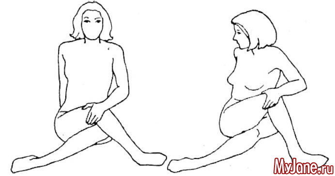 Исходное положение. Сядьте на коврик, разведите прямые ноги так широко, как сможете. Носки «натяните» на себя. Руками обопритесь назад и выполните дыхательный цикл до паузы.