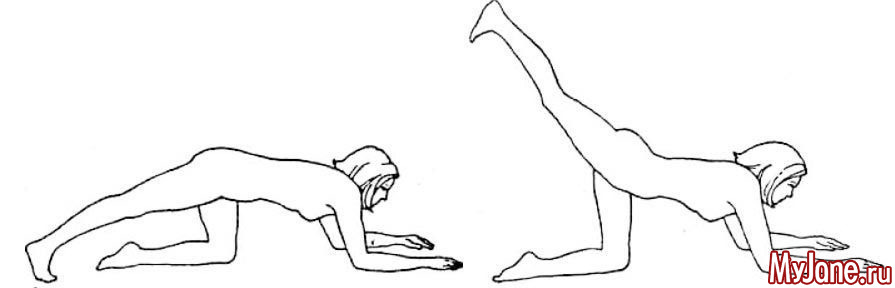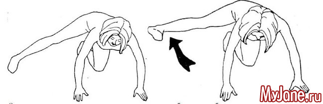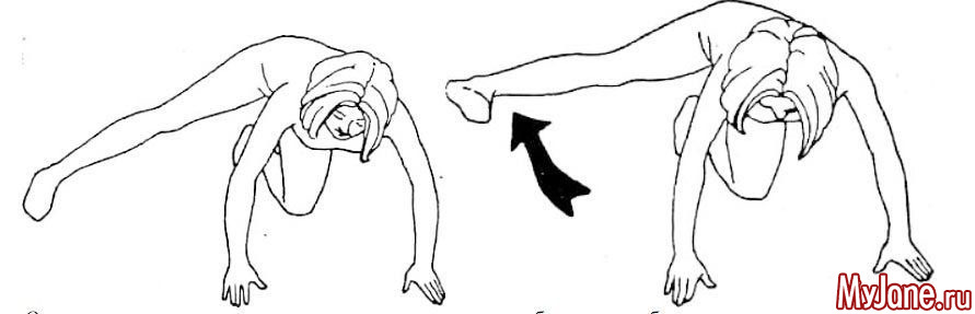 «Оттягивание ноги назад» (термин Г. Чайлдерс) или «классическое отведение» укрепляет мышцы ягодиц и задней поверхности бедра.