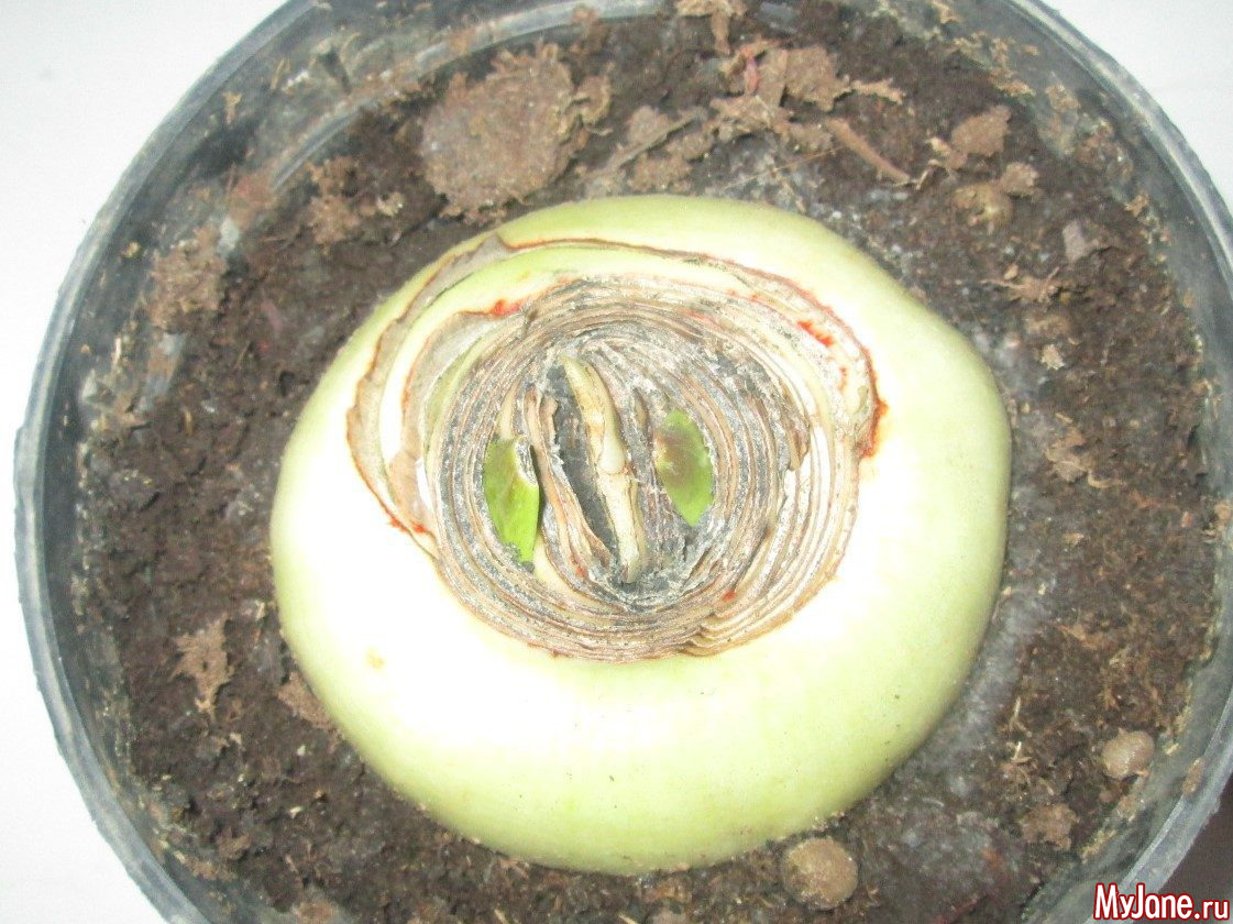 Но луковка живучая оказалась. Внутренности я ей засыпала толченым активированным углем и стала наблюдать. Спустя несколько дней показались кончики цветоносов.
