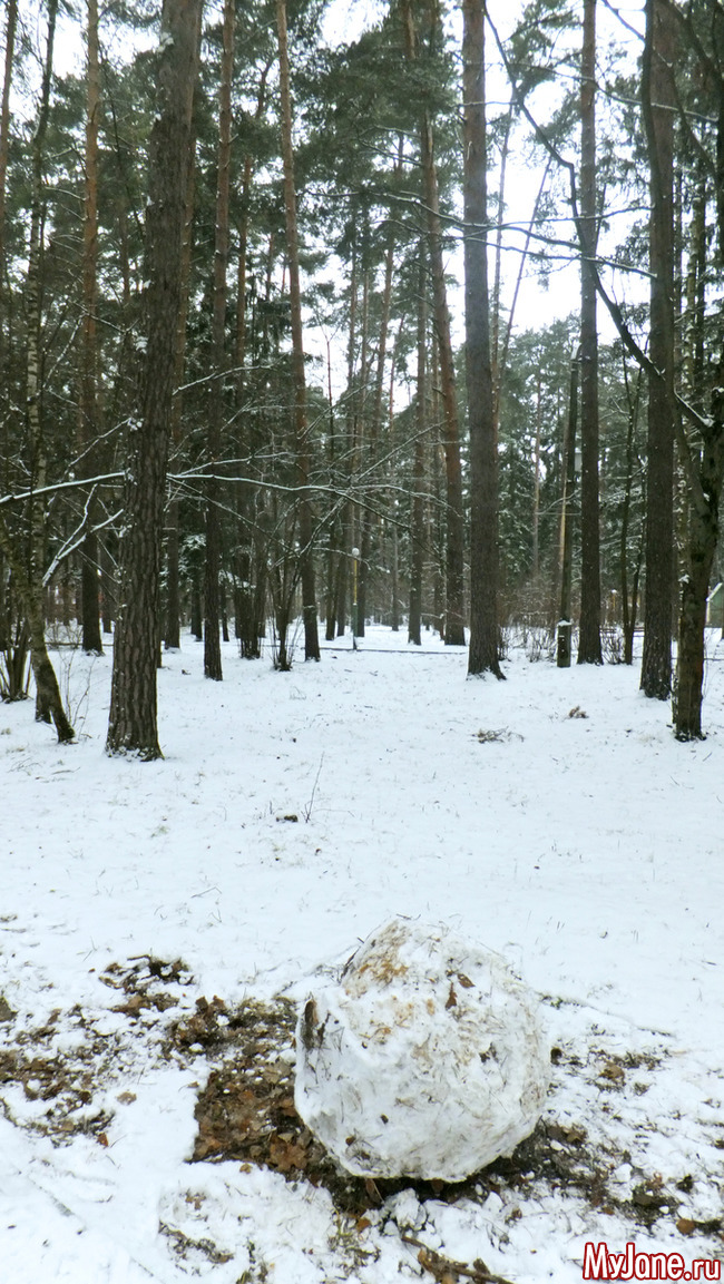 Снега мало, тает каждый день, всю тропинку собрали на одного снеговика...
