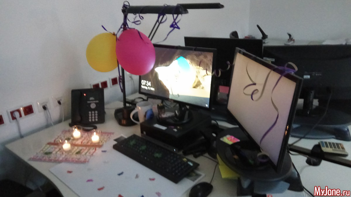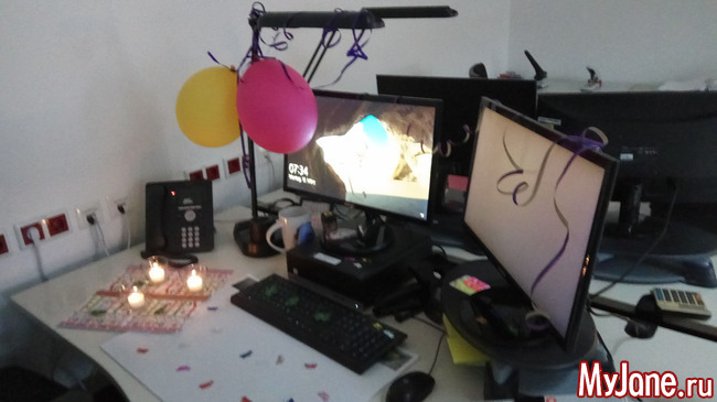 Пришла сегодня после отпуска и ДР на работу, а коллеги моё рабочее место украсили.. и посыпались поздравления