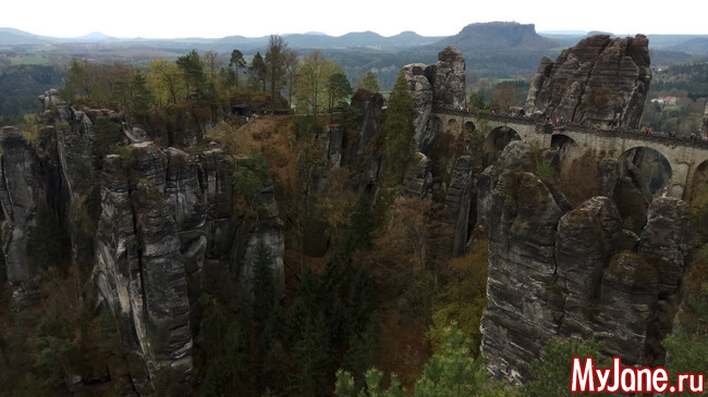 Многие едут в Саксонскую Швейцарию исключительно для того, чтобы взглянуть на Бастай. Бастай - это название горного ущелья и самой монументальной скалы, которая поднимается почти на 200 м над рекой Эльба. Эта изрезанная щелями и изобилующая выступами скала предлагает неповторимые возможности для фотосъёмки, и это не говоря уже о захватывающих дух видах.