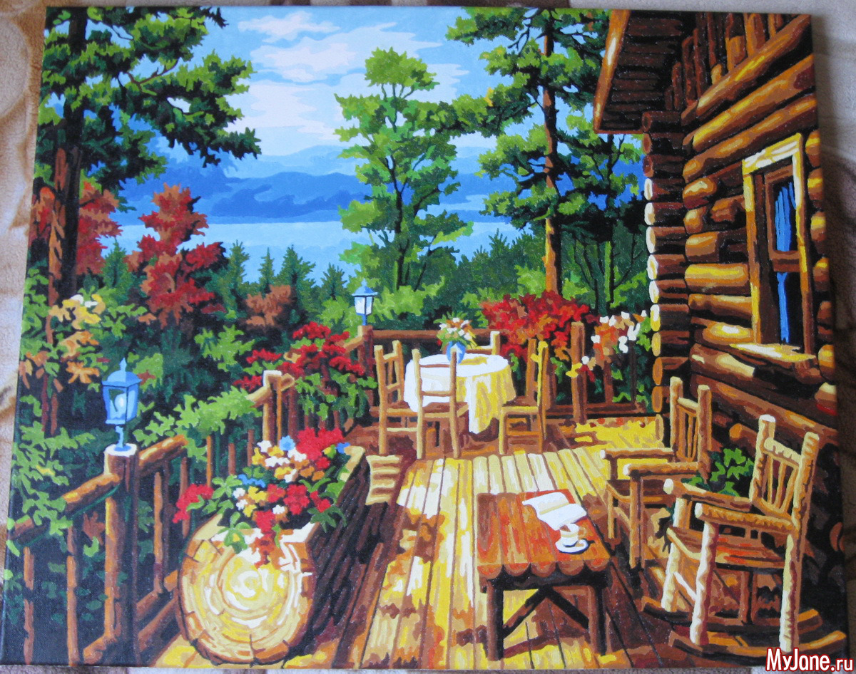 Чур, мое место в кресле-качалке возле столика с книжкой и кофе! А муж сказал, что за круглым столом сидеть будет, на озеро смотреть