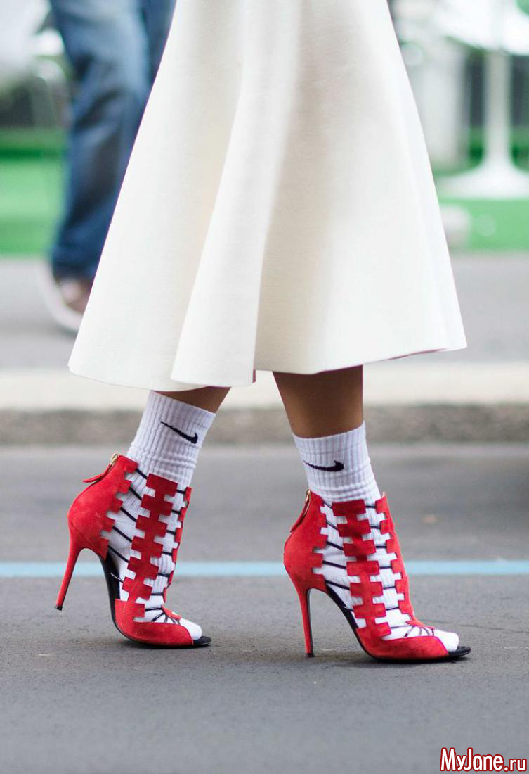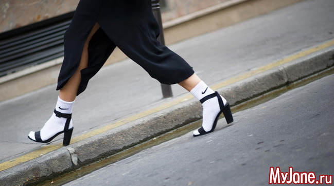 Это сейчас так модно??? Как Вам тренд? Носить белые спортивные носки под шлёпки/туфли??