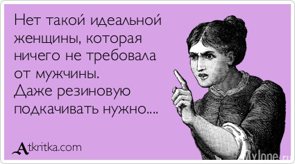 Я понимаю. Тоже хочу, чтобы нескандальная и не капризная, чтобы ноги от ушей, грудь шикарная, попочка красивая и зарабатывала чтобы больше, чем тратит.