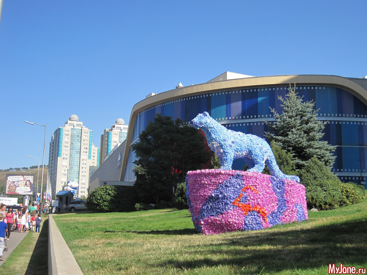 И у одного завода есть львы и павлин из цветов. Но цветы не срезанные, а растут там. Какие-то подсаживают. Какие-то на зиму укрывают. В общем уже не первый год существуют